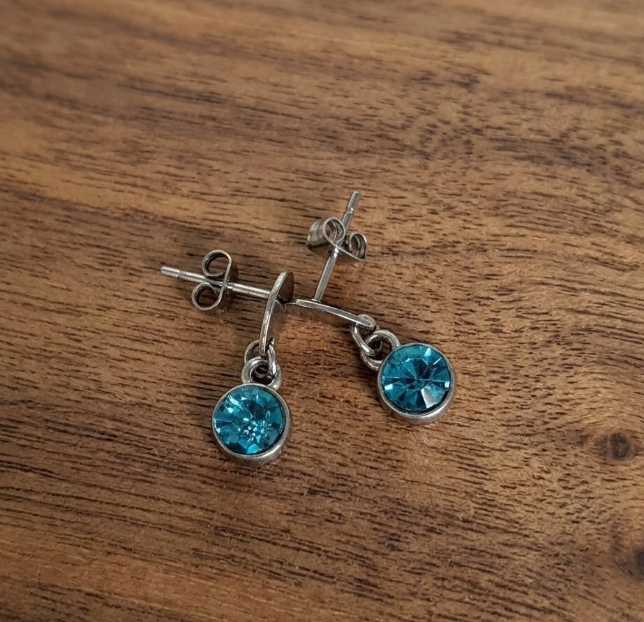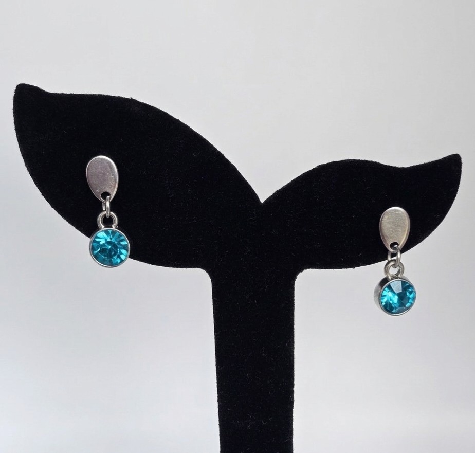 Elegant Contrast: Polished silver-tone settings that enhance the cool blue sparkle.