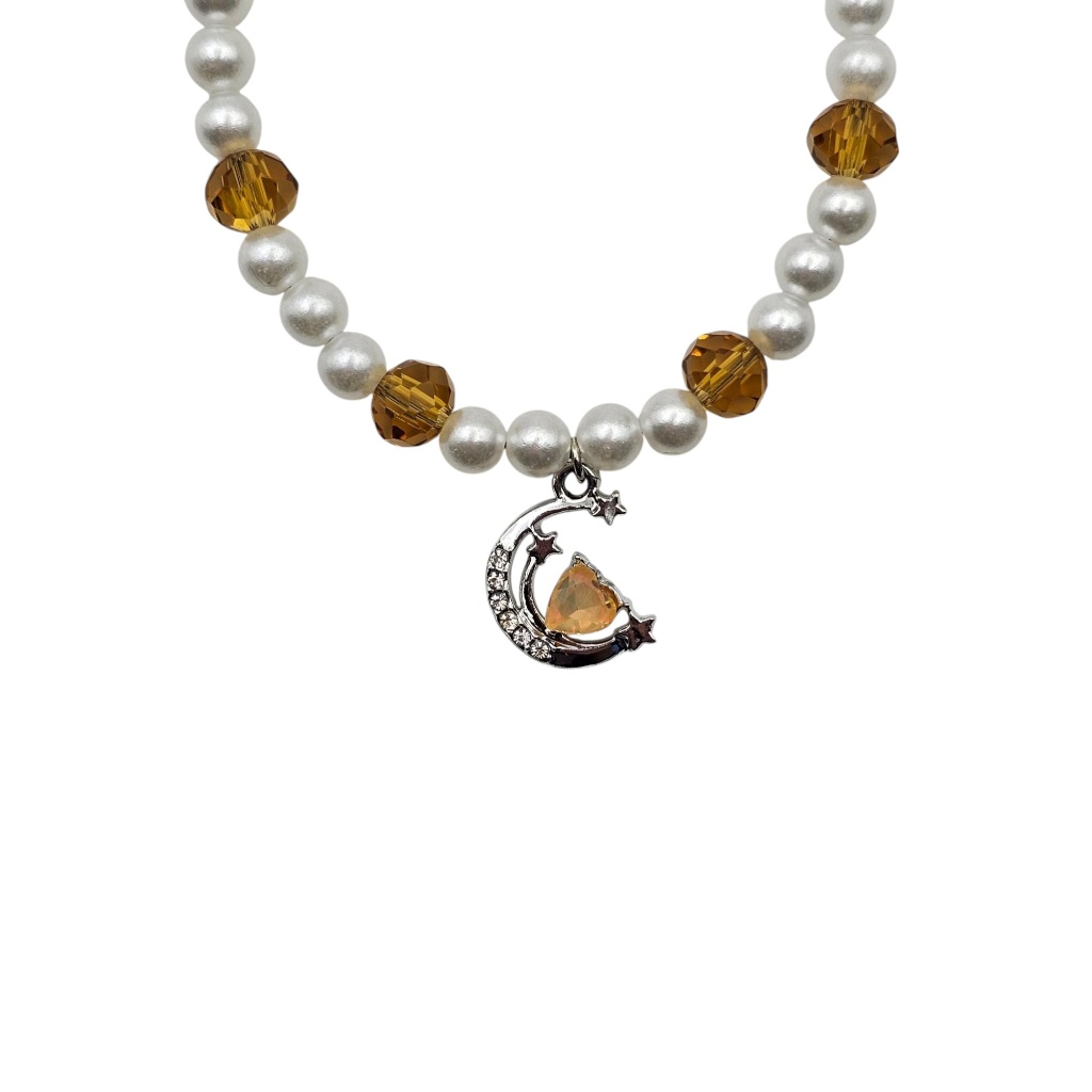 Faux pearls and amber-toned faceted crystals