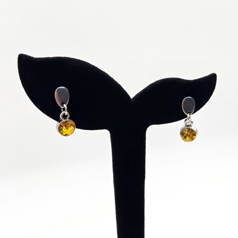 The Golden Yellow Drop Earrings bring a touch of brightness to your look. Each faceted charm reflects light with a warm, golden sparkle, making them perfect for lifting a casual outfit or adding detail to a summer dress.