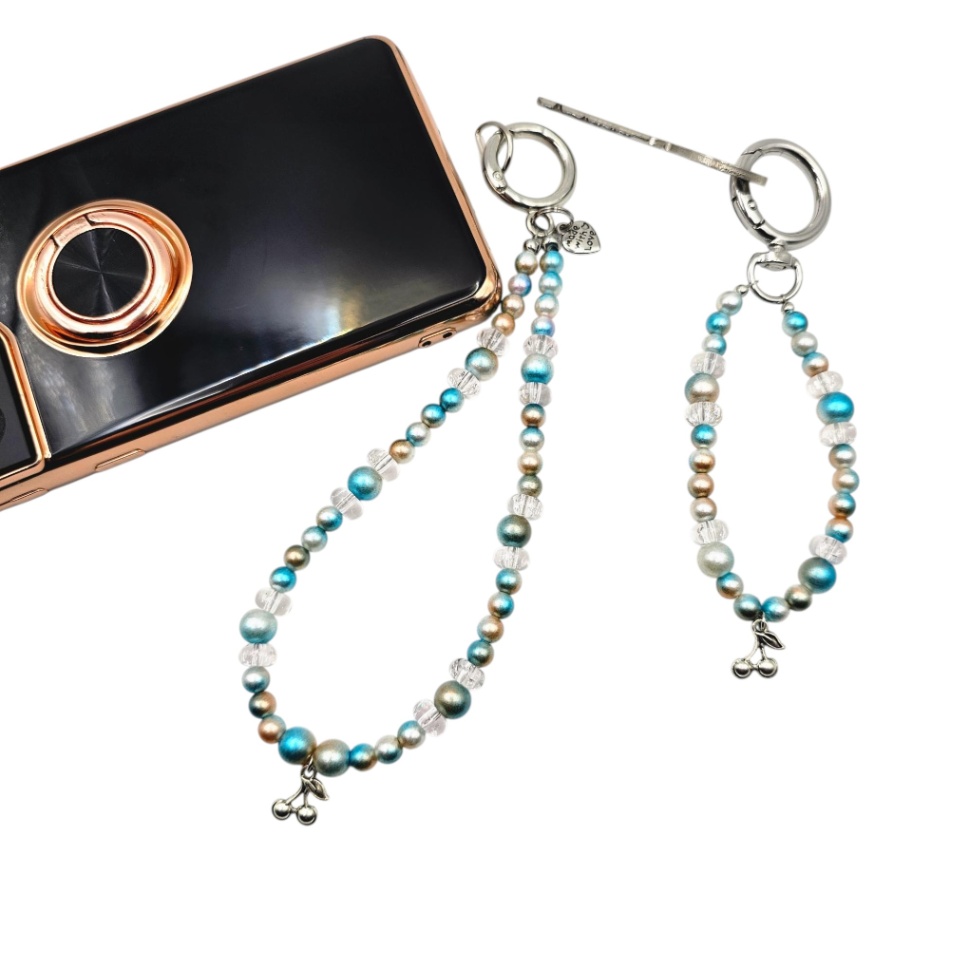 - A refined phone strap and matching keychain designed to be worn together or separately. The set follows a cohesive colour palette and balanced proportions, creating a subtle yet distinctive accessory.