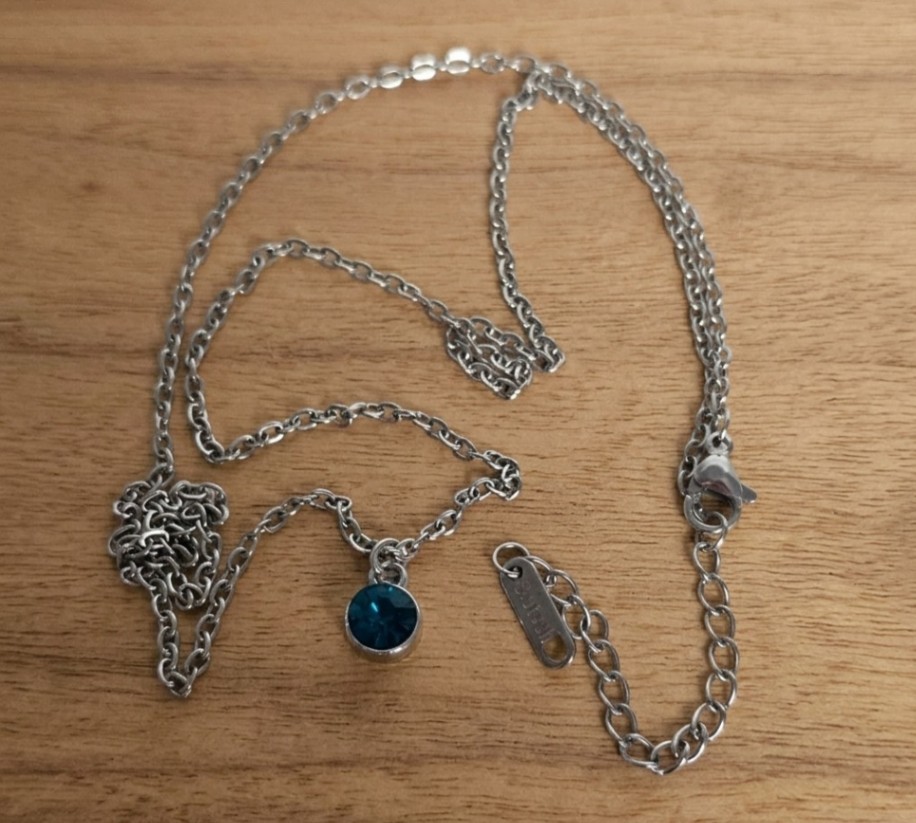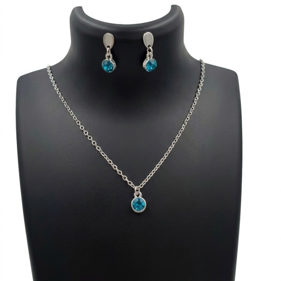 This necklace is designed for a refined and timeless look. It features a brilliant, faceted deep blue crystal charm that captures the light, suspended on a polished silver-tone chain.